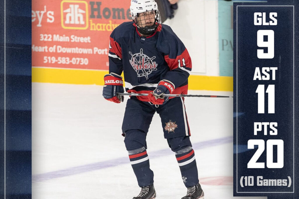 Congratulations to Port Dover Sailors team Captain, Trevor Nunn on being named the Howies Hockey Player of the Month for South Bloomsfield division in October.